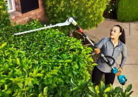 草刈機、チェンソーなどの園芸用機器はエンジン式が主流ですが、パワーやスタミナに優れている反面、排ガスに含まれる大気汚染物質による環境面への影響が大きな課題となっています。この課題に対し、当社はエンジン製品から使用時の排ガスがゼロの充電製品への置き換えを推進することで、脱炭素社会の実現に向けて貢献します。さらに、充電製品はエンジン式に比べ低騒音であることから、周辺環境の負荷低減に貢献できることもポイントです。