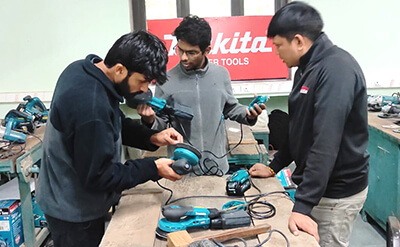 ものづくりに対する関心を高めてもらうために、首都デリーにあるインド工科大学の学生を対象に教育支援を行いました。実際にマキタ製品に触れながら、現場での活用例や製品技術を学んでもらいました。